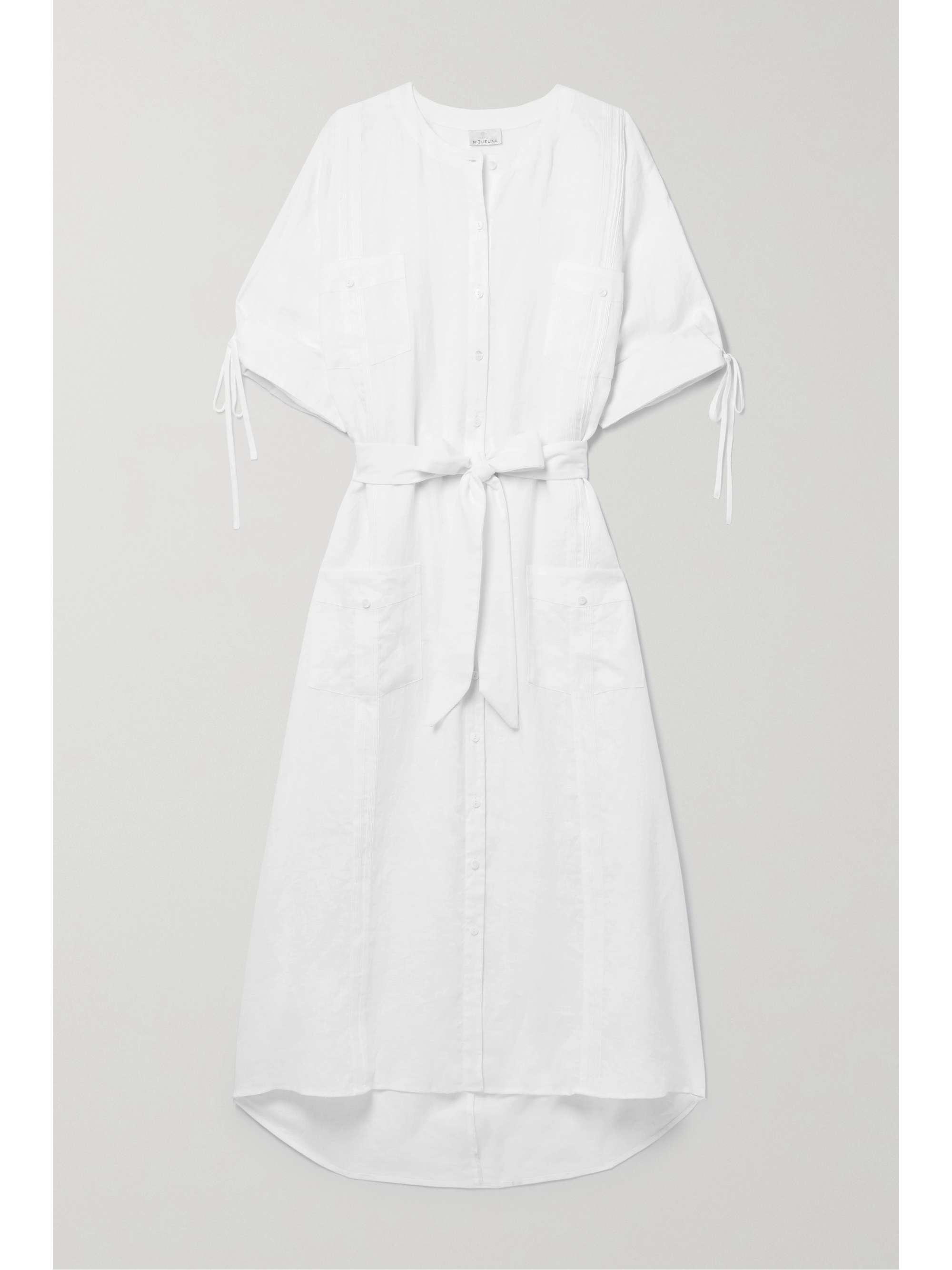 White Paisley Oversized Belted Linen Maxi Shirt Dress Miguelina Net A Porter